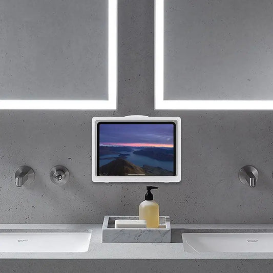 Wall Mount Shower Tablet Holder 180 Degree Rotation Waterproof Tablet Holder Bathroom Tablet Case Touchable Anti-Fog Screen